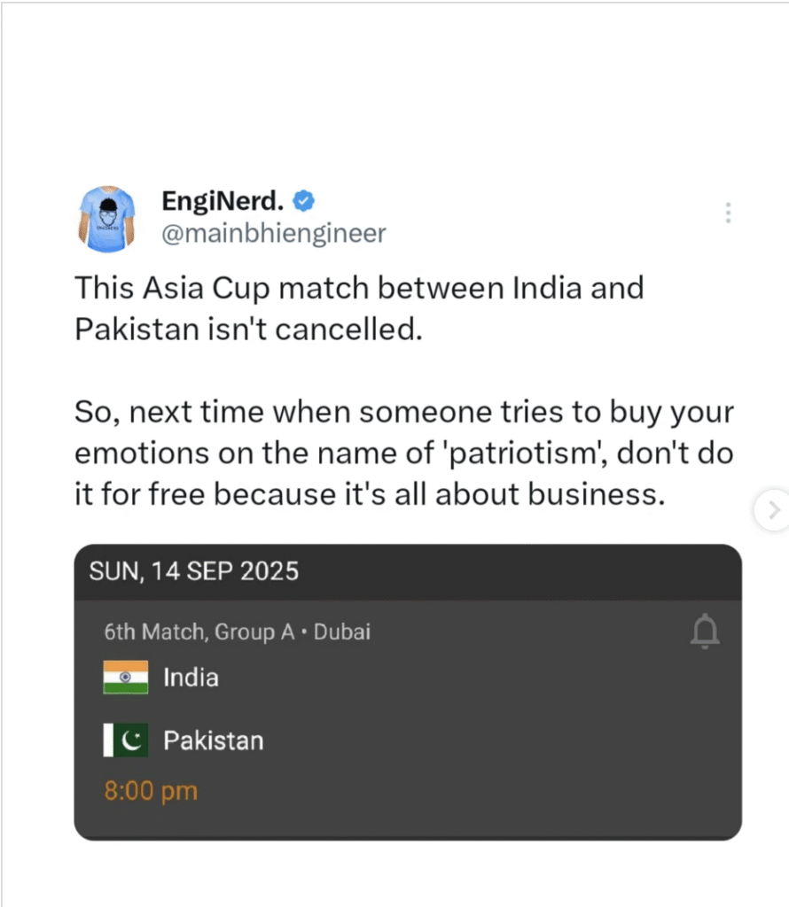 - Memes में अक्सर “Cricket vs Nation”, “Fans disappointed” और “Politics ruining sports” जैसी lines देखने को मिलती हैं।